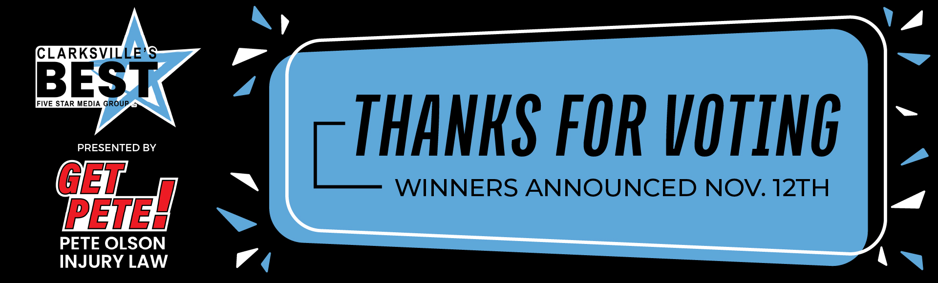 Nominations starts in ... Submit Your Nomination! Voting starts in ... Voting Starts Here! Results will be published in ... Your Clarksville Best 2025 Winners Select categories below to view winners! Eat & Drink Education Health & Beauty Home & Garden Motors Real Estate Services Shopping Things To Do